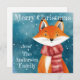 Joli renard d'hiver portant une écharpe dans une scène de neige avec texte personnalisé.