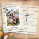 An Easter card that you can personalize with your own photo, names and Easter quotes. The background is white rustic wood illustration and a silver cross.