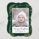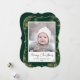 Envoyez des salutations de vacances personnalisables et personnalisées à vos amis, vos collègues et votre famille en cartes photos simples, minimalistes, élégants, amusants, festifs et modernes ! Un beau cadre de variété de flocons d'hiver dorés sur arrière - plan vert sauge entoure votre photo sur papier en forme de support. Le message de bienvenue "Joyeux Noël" est écrit en calligraphie élégante, et ci-dessous présente votre message de bienvenue personnalisé de votre nom de famille dans la typographie moderne. Reverse pour révéler une belle les flocons de neige d'hiver d'or complet sur l'arrière - plan motif vert sauge.
