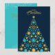 A moderne Christmas tree on a navy background feobjets your greeting on the front and your personalization and names on the back. Select Matte for heaviest paper and high definition for best print quality.