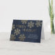 Joyeuses fêtes ! Bleu foncé propre et contemporain avec effet feuille d'or lettering Corporate Christmas Greeting Card, avec arrière - plan bleu marine classe et élégant. Accueillez vos clients, employés et amis avec classe et raffinement cette saison de vacances avec cette carte de voeux pliée et élégante. Copyright de conception © CustomChristmasPhotoCards.com