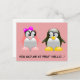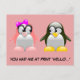 Geek informatique Valentine : Programmation Langue Love Carte Postale Deux manchots de dessin animé, un rose et un noir, se tenant les mains liées sur les bases de la programmation informatique