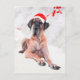 Un mignon chien de Grande Danse assis avec chapeau de Père Noël rouge et l'ornement de Noël rouge, Un cadeau parfait pour Noël!