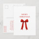 Carte postale de Noël mignonne au design simple et minimaliste avec un arc rouge et l'accueil "Joyeux Noël". Utilisez le modèle pour ajouter votre message personnalisé.