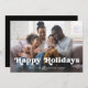 Cette carte photo simple et élégante présente une superposition de texte blanc boho et fantaisiste qui dit "Joyeuses fêtes", avec de la place pour votre photo personnelle préférée. Le dos de la carte est noir.