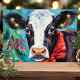 Célébrez la saison des Fêtes avec cette carte unique et festive de Noël de vache! Doté d'une charmante vache ornée d'un arc rouge et entourée de lumières de vacances, cet aquarelle colorée ajoute une touche amusante et joyeuse à vos salutations de vacances. Parfait pour tous ceux qui aiment les vaches ou aiment envoyer des cartes de Noël fantaisistes.