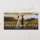 Cette carte moderne et minimaliste de vacances/mariage de Noël de 8" x 4" présente le mot "Joyeux et Marié" dans une simple calligraphie en écriture blanche superposant une photo de fond de sang. L'arrière comprend un motif de snowdots complet, une photo instantanée et un message de vacances personnalisable. L'arrière - plan de base peut être changé en n'importe quelle couleur de votre choix. Tout / La plupart du texte est modifiable. Illustration de fat*fa*tin. Facile à personnaliser avec votre propre message texte, nom, photo ou image. D'autres styles de police, filtres photo et fonctions d'édition sont disponibles sur la page "modifier la conception". ・ ・ ・ ・ ・ ・ ・ ・ ・ www.zazzle.com/fatfatin_blue_knot