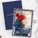Ce design comprend une photo classique de Joyeux Noël, un plaid d'hiver bleu et rouge marine, une calligraphie élégante script d'argent tendance, une photo de famille traditionnelle, simple minimaliste classe minimale, 1 modèle de mise en page photo, avec typographie de calligraphie classique, une carte de voeux de Noël photo, élégant carte photo classique élégant, classique motif classique tartan traditionnel