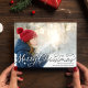 Ce design comprend une photo classique de Noël Joyeux, avec un script élégant de calligraphie tendance argent, une photo de famille traditionnelle, un minimaliste simple classe, avec un modèle 1 disposition photo, une carte de vacances horizontale fond de saignement, avec une typographie classique de calligraphie de fantaisie, avec un motif bleu marine, rouge et vert clair plaid hiver, une carte de voeux de Noël photo, élégant carte photo classique classique