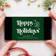 Carte de Noël d'entreprise verte pour vos clients, clients, employés, affiliés, etc, avec "Happy Holidays" dans la typographie blanche stylisée, le logo de votre entreprise, et un accueil saisonnier (merci, de nous tous, etc.) et nom d'entreprise dans la typographie blanche moderne simple Sur le dos, entrez votre adresse de site Web pour créer un code QR scannable que vos clients peuvent scanner pour se connecter facilement à vos plateformes en ligne.
