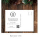 Une carte postale élégante qui vous souhaite un express à vos clients pour leur exprimer la gratitude et l'appréciation de votre entreprise. L’avant est ornée d’une belle aquarelle abstraite de pins en vert, rouge, or et orange, d’une salutation saisonnière personnalisable et du nom de votre entreprise. Au contraire, personnalisez votre message, téléchargez votre logo d'entreprise et entrez votre adresse de site Web pour créer un code QR numérisable.