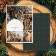 Partagez la joie de la saison avec notre Carte Photo de Noël. Doté d'un magnifique collage de 5 photos avec une élégante arche sur la photo en haut à gauche, orné des mots "Joyeux Noël" en faux script de feuille d'or calligraphie. Personnalisez-le avec votre nom de famille et votre année en typographie minimaliste. Retournez-le pour révéler un arrière - plan vert profond avec des pois mielleux en feuille d'or. Fêtez dans le style !