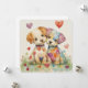 Aquarelle de chiots patchwork avec des coeurs pour la Saint-Valentin. Citation mignonne, carte douce.