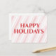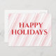 "Éclairez la saison avec cette carte postale festive ! Des rayures à la menthe poivrée en diagonale offrent un cadre gai pour votre salutation "Happy Holidays".