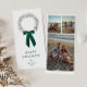 Aquarelle conception de couronne de Noël avec un arc de couleur à feuillage persistant - personnalisable avec votre monogramme, 3 photos et voeux de Noël.