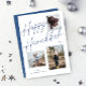 Cette décontractée, mais élégante carte de vacances photo comprend trois photos et dit "Happy Hanoukka" dans une police de caractères bleu marine.
