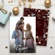 Cette carte verticale de Noël pleine photo présente un élégant script moderne et de l'espace sur le dos pour un message personnel. L'arrière offre un motif boho hiver verdoyant apparaissant dans des tans doux et des teals sur un arrière - plan bordeaux foncé profond.