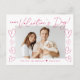 Carte postale moderne de Saint Valentin avec "Heureuse Sainte-Valentin" dans un script magenta branché avec des coeurs dessinés à la main le long des côtés de la carte sur un arrière - plan blanc. Votre photo horizontale est affichée près du milieu de la conception. Personnalisez la carte postale de la Saint Valentin en ajoutant votre nom et l'année en lettres magenta. La carte postale s'inverse pour afficher votre adresse de retour et votre message personnel.