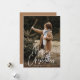 Cartes photos de vacances modernes avec votre photo verticale avec "Joyeux Noël" affiché dans un script blanc manuscrit. Personnalisez la carte photo de Noël avec votre nom de famille et l'année. La carte de vacances photo unique revient pour afficher un arrière - plan marron-caramel avec des points blancs subtils.