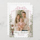 Partagez la joie des vacances avec cet élégant thème Nutcracker Joyeux carte photo de Noël. Avec des photos de votre famille encadrées par le casse-noix, la fée de prune de sucre, des verdure d'aquarelle, des ornements et un arc rose coquette festif, ce design allie à merveille charme saisonnier et modernité. L'avant présente votre accueil de vacances et votre nom de famille, tandis que l'arrière comprend de l'espace pour un message personnalisé, rendant chaque carte chaleureuse et unique. Parfait pour envoyer des voeux chaleureux à des amis et à des proches pendant la période des fêtes.