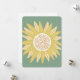 Un beau tournesol géant jaune dessiné à la main sur un arrière - plan vert clair.