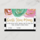 Ces cartes à rayures noires et blanches "devinez combien de baisers" sont une activité amusante pour une douche de mariée au thème élégant et chic. Remplissez un pot avec les baisers d'Hersey et demandez à vos invités de deviner combien de bonbons s'y trouvent. La réponse la plus proche gagne un prix ! Le design classique à rayures noires est orné de grandes fleurs de couleur menthe et rose et d'une police de caractères en écriture avec paillettes dorées. Le dos présente un cœur doré.