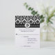 Cartes de réponse RSVP avec choix de menu à monogramme en damas floral noir et blanc. Parfait pour les thèmes de mariage médiéval ou renaissance ou mariage victorien,