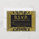 Ces RSVPs présentent un cadre géométrique complexe, des motifs géométriques, une palette de couleurs noir et or, et d'autres détails stylistiques inspirés de l'Art Déco et des années folles. Vous pouvez customiser les champs de texte d'exemple à votre convenance.