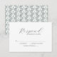 Améliorez l'anticipation de votre journée spéciale avec notre carte de réponse de charme, soigneusement conçu pour compléter notre ensemble de papeterie de baptême de crête d'aquarelle. Chaque carte offre aux clients une façon transparente de fournir leurs informations de réponse, le tout contre un arrière - plan blanc immaculé. L'envers dévoile un élégant motif dans les tons vert sauge. Idéal pour votre baptême jumelle et garçon ou toute célébration à la recherche d'une touche d'élégance. Découvrez l'ensemble de la papeterie religieuse sans distinction de genre à l'adresse www.zazzle.com/dotellabelle, où chaque détail se tisse pour créer votre histoire familiale parfaite.