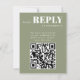 Vous recherchez une carte RSVP moderne et élégante pour le code QR Mariage ? Consultez nos cartes RSVP Stylish Sage Green pour Code QR Mariage. Doté d'une calligraphie audacieuse qui ajoute une touche de sophistication, ce rsvp vert sage avec code qr offre un look propre et simple. Vous pouvez ajouter une URL pour générer un code QR. Ce rsvp de mariage minimaliste a une torsion moderne qui va captiver ceux qui ont l'oeil pour une sophistication subtile. Carte de code qr de mariage rsvp minimaliste !