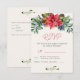 Carton de réponse Poinsettia. Ce design présente une illustration aquarelle de Poinsettia avec un arrangement de gui, de brindille de pin et de baies rouges. La couleur de fond (recto et verso) peut être modifiée.