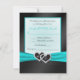 Cette carte de réponse de mariage avec monogramme a une apparence formelle avec des plis en satin FAUX noir et un ruban en satin bleu turquoise IMPRIMÉ avec une paire de coeurs joints ornés de diamants imprimés dessus. Si vous avez besoin d'autres articles dans ce style, veuillez envoyer un courriel à niteowlstudio@gmail.com avec votre demande.