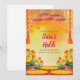 Ce modèle d'invitations DIY Haldi, invitation Dholki ou invitations Pithi, une invitation fusion dans l'élégance traditionnelle, est complété par des fleurs et des feuilles, parfait pour vos célébrations de cérémonie Haldi.