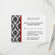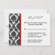 Cette carte RSVP Red Crimson 4x5 taille noir Damask est parfaite pour tout couple à placer à l'intérieur de leur invitation de mariage pour que leurs destinataires répondent avec leurs informations R.S.V.P. Elles sont fournies avec des enveloppes blanches standard.