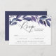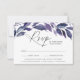 La carte RSVP botanique élégante est composée de feuilles d'aquarelle violet et bleu et de feuillage avec une calligraphie noir foncé et du lettrage en bloc. Personnalisez avec votre date RSVP désirée, ainsi que le libellé personnalisé accepter et refuser, et les options de repas ou d'entrée. Conçu pour correspondre à notre collection d'invitation Foliage Violet Abondant.