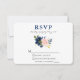 Elégante aquarelle moderne Classic Blue et rose Blush Floral Wedding Carte RSVP comprend des roses et verdure bleu rose. Arêtes arrondies.