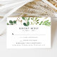 Cartes RSVP de mariage botanique élégantes, avec un cadre rectangle de feuillage aquarelle dans les tons de printemps et de vert mousse. Personnalisez les cartes RSVP de mariage vert boho avec votre date de réponse désirée, les acceptations/déclins de texte personnalisé, et les choix de menu. La carte RSVP botanique moderne a été conçue pour être coordonnée avec notre collection mariage Watercolor Greenery.