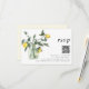 Ces magnifiques cartes de réponse de RSVP de mariage présentent une luxuriante composition de verdure de citron aquarelle dans un pot, de couleurs jaune et vert. Un look floral élégant de citrons d'été sur un fond blanc simple, avec une typographie moderne tourbillonnante. La carte de RSVP combinée comporte un code QR sur le devant, ainsi qu'une carte de RSVP traditionnelle au verso pour les invités qui préfèrent renvoyer leurs cartes par la poste.