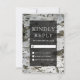 Elégante carte RSVP avec typographie moderne contre un arrière - plan d'écorce de bouleau rustique. Retournez la carte pour révéler un beau coeur sculpté et ajoutez le monogramme de la mariée et du marié au dos de la carte.