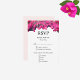 Elégante frise magenta rouge sur les cartes RSVP de mariage blanc. Le côté arrière a un rose d'or clair arrière - plan. Les fleurs des bougainvilliers sont accueillantes et belles. Cartes modernes de mariage floral.