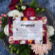 Un design élégant et soigné de carte de réponse mariage avec un mélange de belles fleurs d'été sur un arrière - plan magenta et une typographie noire personnalisable sur un arrière - plan transparent blanc et cadre or. Le langage des fleurs, connu sous le nom de floriographie, attribue des significations différentes à différents types et couleurs de fleurs. Par exemple, les roses représentent l'amour ; les bégonias symbolisent l'harmonie ; les dahlias signifient l'engagement ; le ranunculus représente le charme ; et les snapdragons signifient la grâce.
