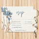 Fleurs de maïs bleu doux fleurissant dans un champ brun tan doux d'herbes séchées font cette carte de réponse mariage simple avec choix de dîner moderne mais rustique et unique. On ressent presque la douce brise qui déplace les herbes. Simple, mais élégant, les tons terre et le blues doux sont la combinaison parfaite. Le dos de la carte porte le thème du champ. Créé par Simply Farmhouse Press.