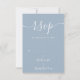 Cette élégante carte RSVP bleu et blanc poussiéreux peut être personnalisée en lettrage blanc chic. Vous pouvez ajouter des informations supplémentaires telles que le choix du menu au verso. Parfait pour les mariages, douches nuptiales, baby showers, baptêmes, fêtes de fiançailles, fêtes d'anniversaire, diplômes, anniversaires et autres événements spéciaux tout au long de l'année! Conçu par Thisisnotme©