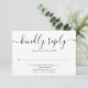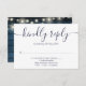 Une carte RSVP rustique avec vos détails en typographie chic et personnalisée avec vos noms et feuillage floral dessiné à la main et les lampes à cordes sur un arrière - plan de panneaux de bois bleu rustique au verso. Conçu par Thisisnotme©