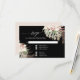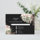Carte de réponse RSVP Fleur tropicale Orchidée blanche sur fond noir pour s'harmoniser avec notre suite complète de faire-part de mariage. Un fond noir moderne et audacieux est à la fois élégant et sombre lorsqu'il est associé à des images aquarelles rose, grises et vertes peintes à la main dans un style floral bohème avec du feuillage de jungle séché et des feuilles de palmier pour un mariage sur la plage, thème tropical ou bord de mer. Copyright, artiste licenciée et connue internationalement, Audrey Jeanne Roberts.