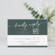 Cette carte de réponse au code QR et enveloppe verte émeraude de style bohème chic est parfaite pour un mariage minimaliste. Le design bohémien moderne de couleur vert forêt sombre et d'humeur sombre présente une calligraphie rustique simple avec un style unique et classique.
