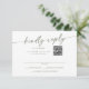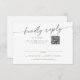 Cette carte rsvp boho chic vert et blanc dans et code QR est parfaite pour un mariage minimaliste. Le design bohème moderne et neutre de sauge d'olivier vert et blanc présente une calligraphie rustique simple au style unique mais classique. Donnez à vos invités la possibilité de poster dans leur carte rsvp, ou simplement répondre en ligne avec cette carte de réponse de code QR. Entrez votre adresse Web dans la section de code QR du modèle et le code QR sera automatiquement mis à jour et lié à votre site.