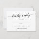Cette carte rsvp de mariage chic noir et blanc est parfaite pour un mariage minimaliste. Le design bohème moderne en noir et blanc présente une calligraphie rustique simple avec un style unique mais classique. Parfait pour toute saison : printemps, été, automne ou hiver.