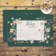 Cette carte de réponse mariage est dotée d'un élégant arrière - plan vert émeraude, qui dégage un sentiment de sophistication et de richesse. La teinte verte profonde crée un décor captivant qui donne le ton d'une célébration mémorable. Au centre de l'invitation se dresse un cadre de texte ovale, qui constitue un point focal gracieux. Le cadre est magnifiquement travaillé, dégageant un sens du raffinement et de l'élégance. Sa forme apporte une touche d'unicité, attirant l'attention des destinataires. Autour du cadre de texte, des fleurs sauvages d'aquarelle délicats et rustiques sont artistiquement disposés. Ces fleurs charmantes, aux teintes douces, évoquent un sentiment de beauté naturelle et de tranquillité. La technique de l'aquarelle leur donne une apparence douce et éthérée, renforçant l'ambiance romantique globale de l'invitation. La combinaison de l'arrière - plan vert émeraude, du cadre de texte ovale et des fleurs sauvages d'aquarelle rustique crée un faire-part de mariage visuellement époustouflant qui respire l'élégance et une touche de fantaisie. Il ouvre la voie à une célébration romantique remplie de beauté naturelle et de moments de coeur. Créé par Simply Farmhouse Press, il fait partie de la suite Rustic Fleur sauvage Frame Emerald Green mariage.