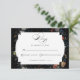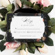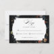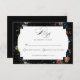 Ce design RSVP chic présente une vie morte florale hollandaise du 18ème siècle, avec tulipes et fleurs sauvages blancs, rouges et or, sur un arrière - plan noir avec étiquette central personnalisé, des graphiques floraux complémentaires et une calligraphie personnalisée fluide et élégante. Le dos est doté d'une couronne florale optionnelle avec modèle monogramme.